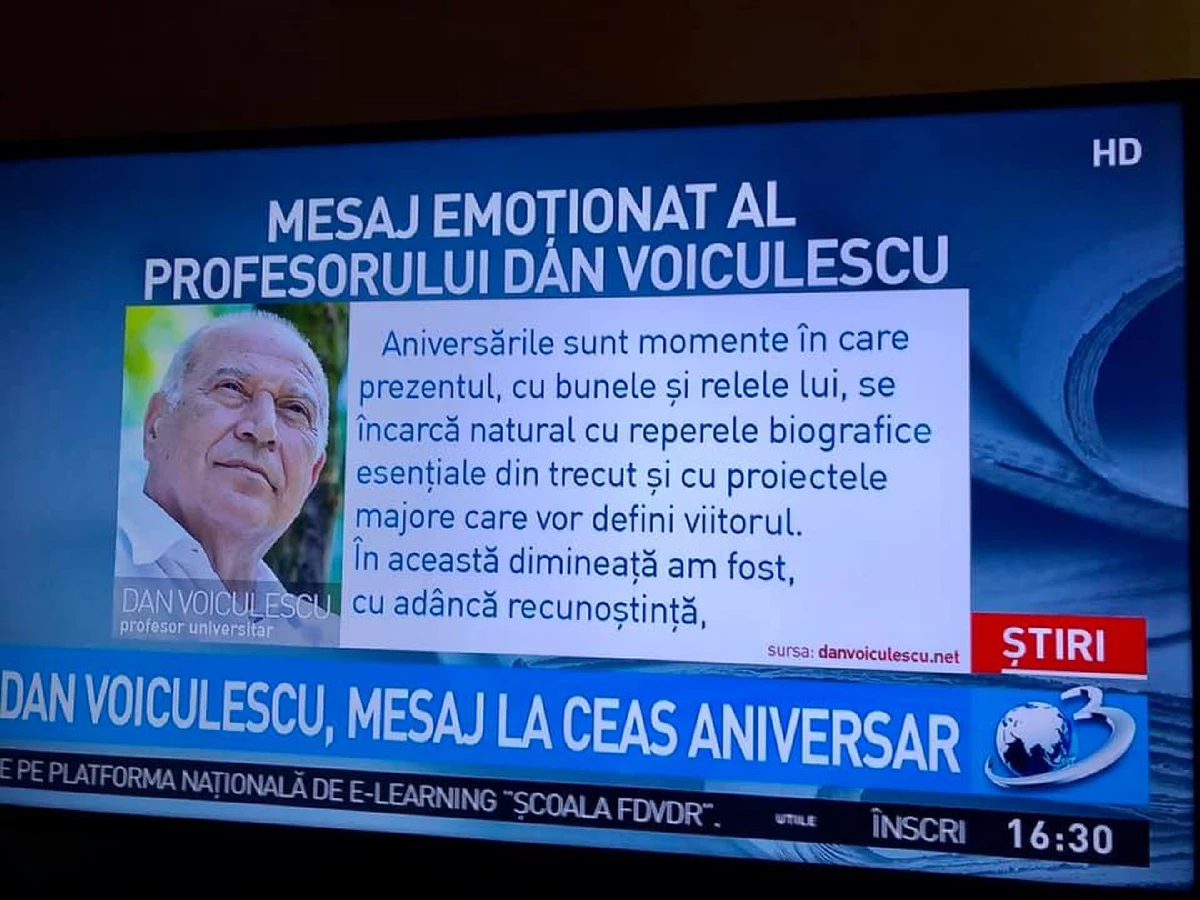 Drept urmare, tonomatele cu fise ale Antenei 3 repetă în bandă un, cităm întocmai, ”mesaj emoționant al profesorului Dan Voiculescu”, în care fostul turnător de rude nu doar că nu spune nimic cu sens, dar mai și bate câmpii fără pic de talent. Probabil că lucrurile vor degenera într-un soi de Cântarea României anteniste, odată cu intrarea în emisie a pupinfundiștilor săi speciali, Mihai Gâdea și Mircea Badea, întovărășiți de gașca ciudată.