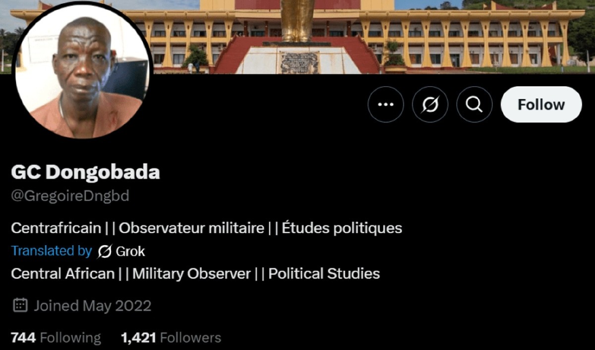 Contul fals de X, intitulat "Gregoire Cyrille Dongobada":