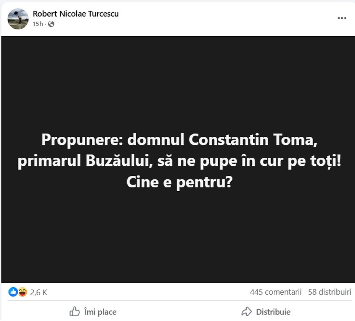 Recentele declarații tranșante ale lui Constantin Toma au fost urmate de o reacție cel puțin interesantă a trompetei suveranisto-putiniste Robert Turcescu, angajatul lui Florentin Pandele la Metropola Voluntari, deci, prin extensie, și subordonat al Gabrielei Firea: