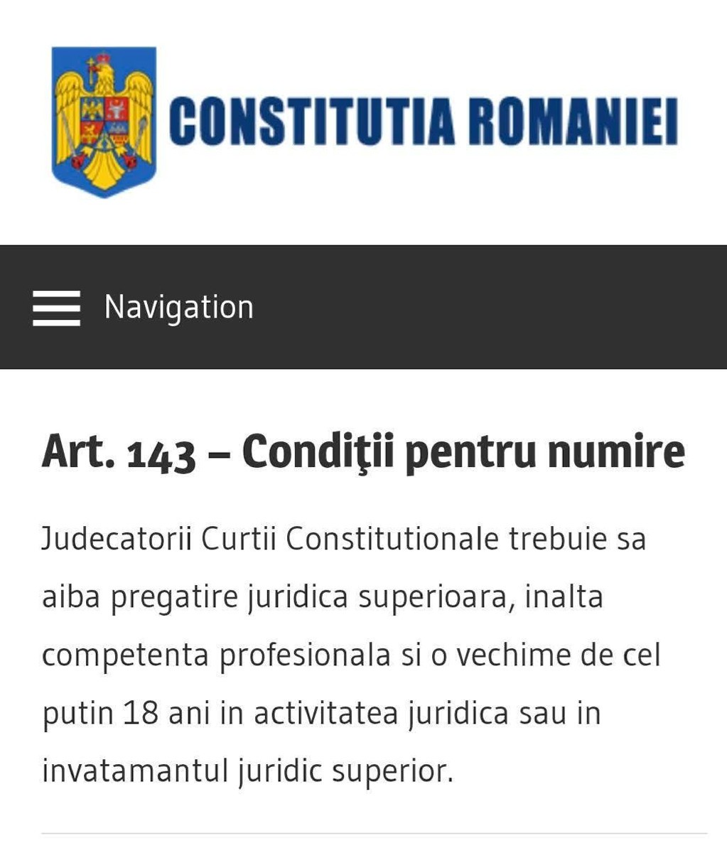 Constituția cere 2 doar condiții pentru numirea unui judecător la CCR: 18 ani vechime in activitate juridică sau în învățământul superior și înaltă competență profesională.