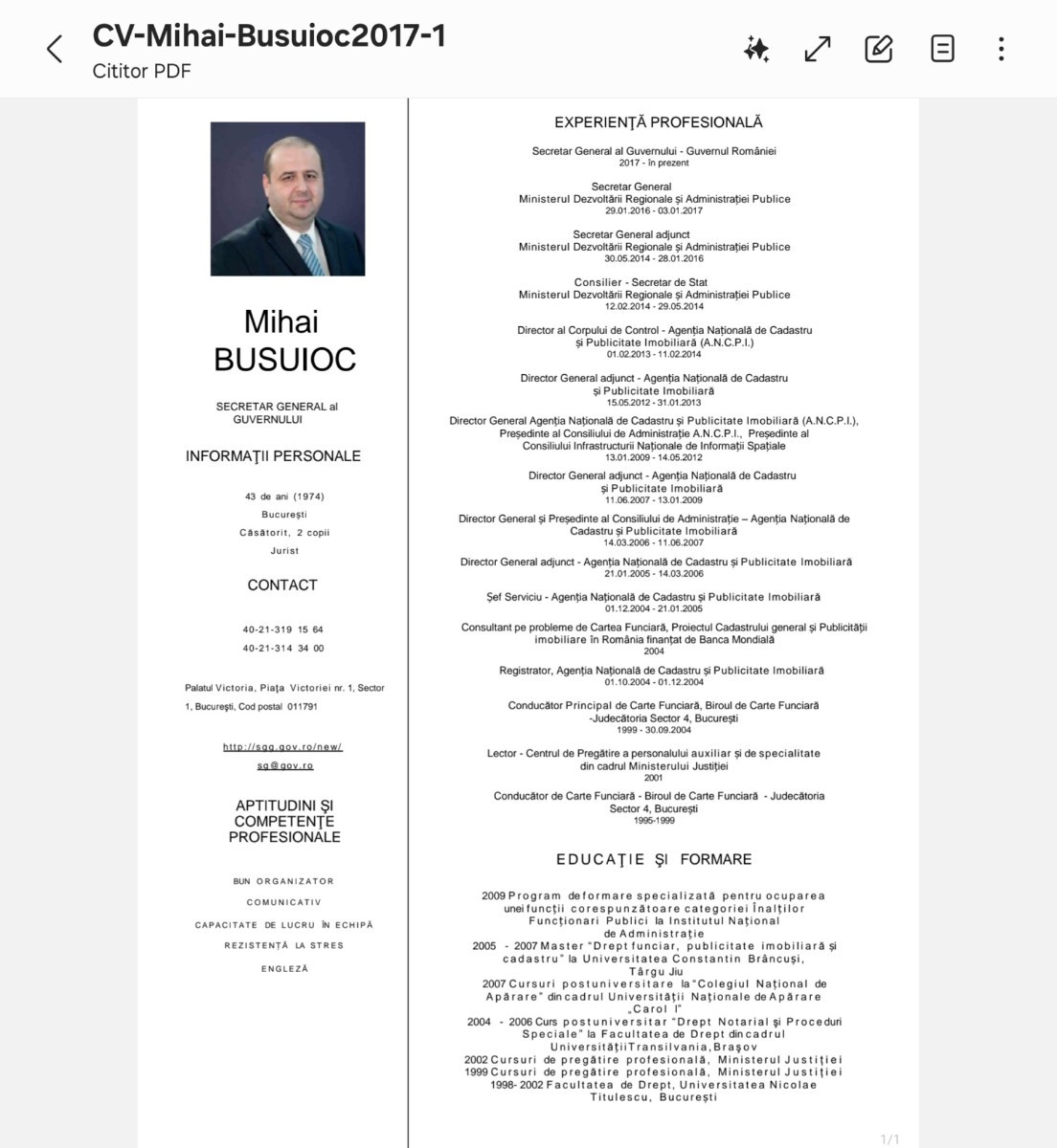 Referitor la CV-ul lui Busuioc, avocatul Neacșu precizează într-o altă postare: