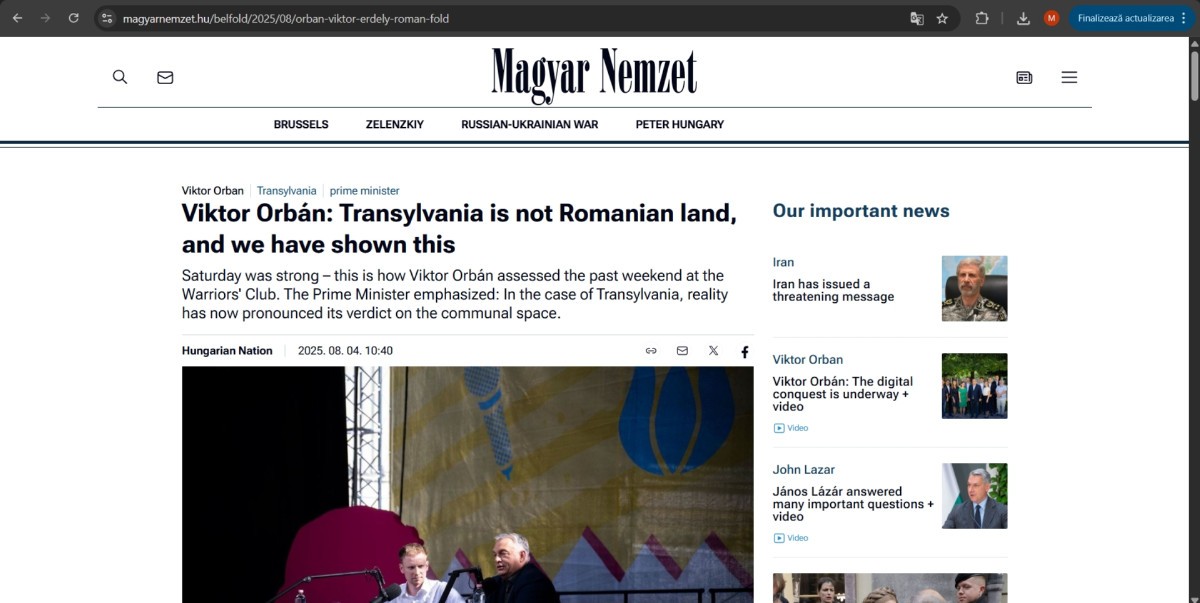 Într-un comentariu revizionist făcut pe un grup privat de Facebook și postat luni dimineață, premierul ungar putinist Viktor Orbán a evaluat evenimentele de la sfârșitul săptămânii trecute, ironizându-l pe liderul opoziției Péter Magyar pentru că a catalogat Transilvania drept pământ românesc.