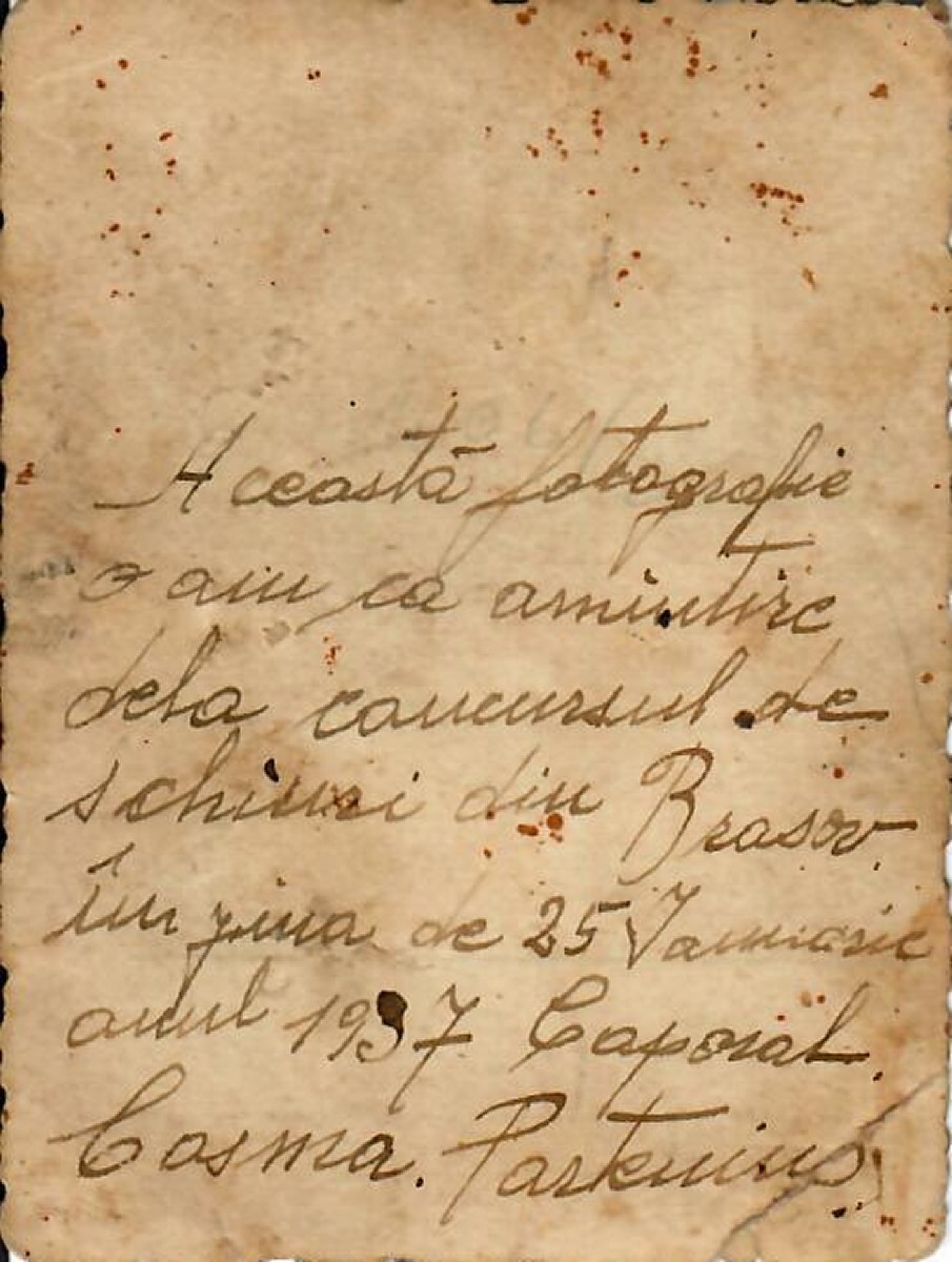 Zilele acestea s-au împlinit 73 ani de la execuția lui Partenie Cosma, omul care a furnizat cantități semnificative de armament rezistenței anticomuniste făgărășene. Cu acest prilej dorim să oferim publicității un document foto inedit, descoperit în arhiva lui Ion Gavrilă Ogoranu, aflată în casa acestuia și Anei Gavrilă din Galtiu, jud. Alba. Fotografia, deteriorată de vreme, îl suprinde pe Partenie Cosma la un concurs de schi, la Brașov, pe 25 ianuarie 1937 (foto jos). Să ne amintim de viața și moartea eroică a acestui erou al luptei anticomuniste, reconstituită pe baza documentelor și mărturiilor apropiaților lui, de Lucia Baki.