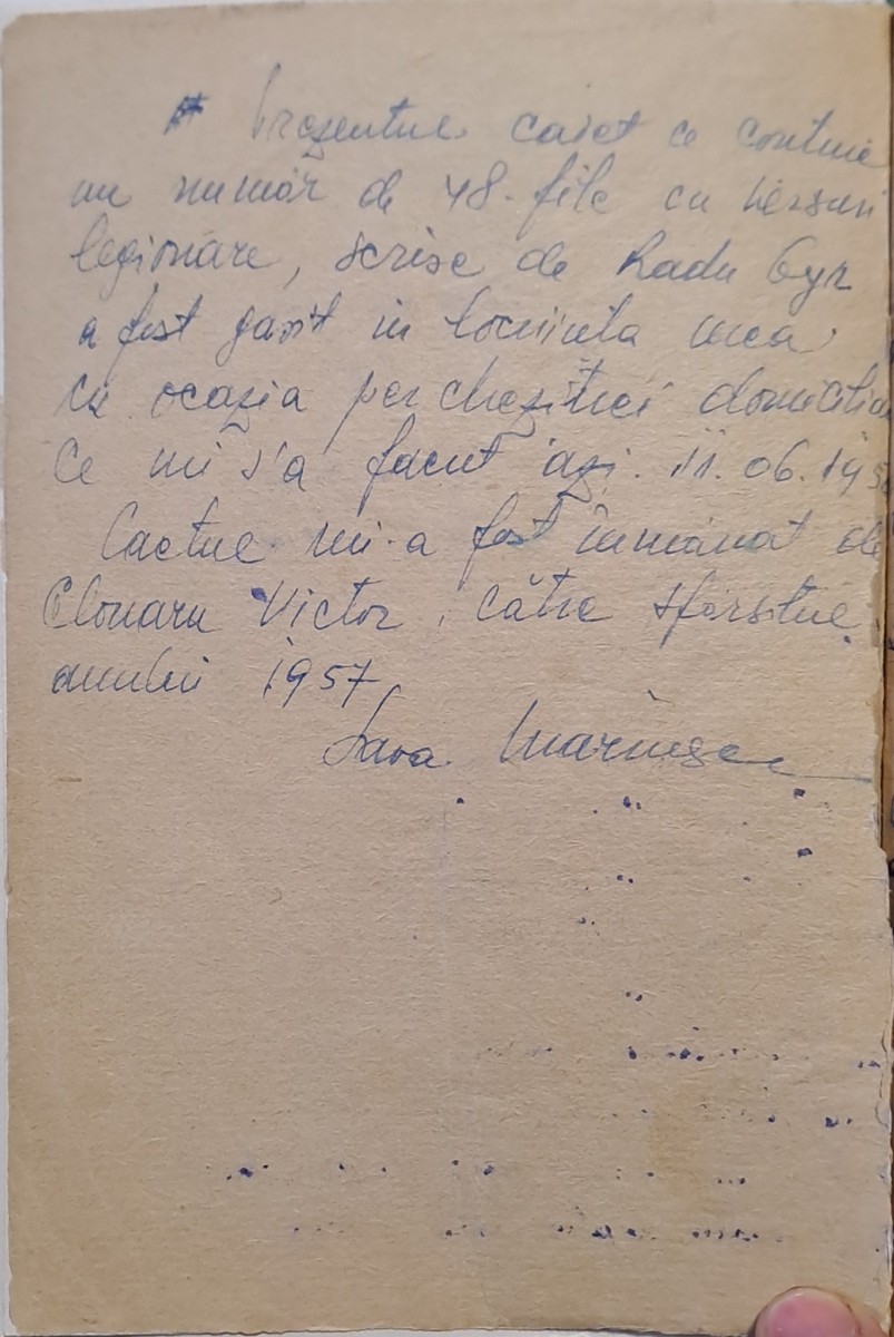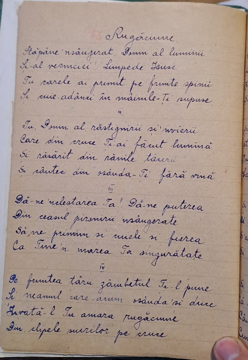 După 13 ani de când le-am văzut prima dată, am simțit cu o stranie bucurie, dar și cu tristețe, că mă aflu lângă suferința celor peste 100 de ani de închisoare, dacă e să luăm în calcul doar condamnările primite pentru aceste caiete (căci dacă le-am socoti și pe cele ale autorului/autorilor versurilor și pe ale celor cărora le-au mângâiat suferința, s-ar face mii și mii).
