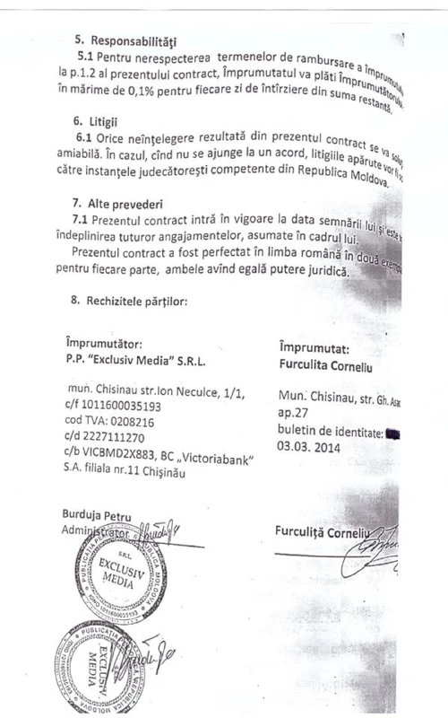 - contractul de împrumut nr.25/28 din 28.04.2016 a sumei de 500 000 lei între „Exclusiv Media” SRL