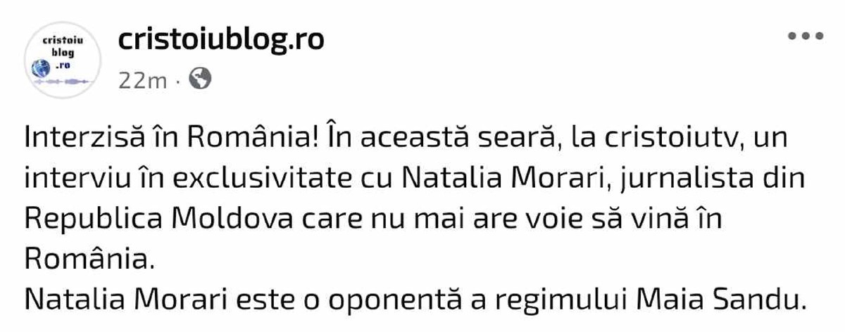 Если бы он был действительно «журналистом», а не просто бывшим агентом Секуритате, который сильно постарел, вам следовало бы узнать об этом от Иона Кристоиу (он же «Короиу»), который дал Наташе обширное интервью (подробности ЗДЕСЬ и ЗДЕСЬ ). Вместо этого он представил её как «румынскую журналистку» и разыграл все её уловки, ругая одновременно Румынию, НАТО, ЕС, Союз и т.д. Это была просто глупость + подлость, или что-то ещё? Стоит отметить, что Короиу и сейчас обвиняет румынское государство в запрете «журналистки» Натальи Морарь.