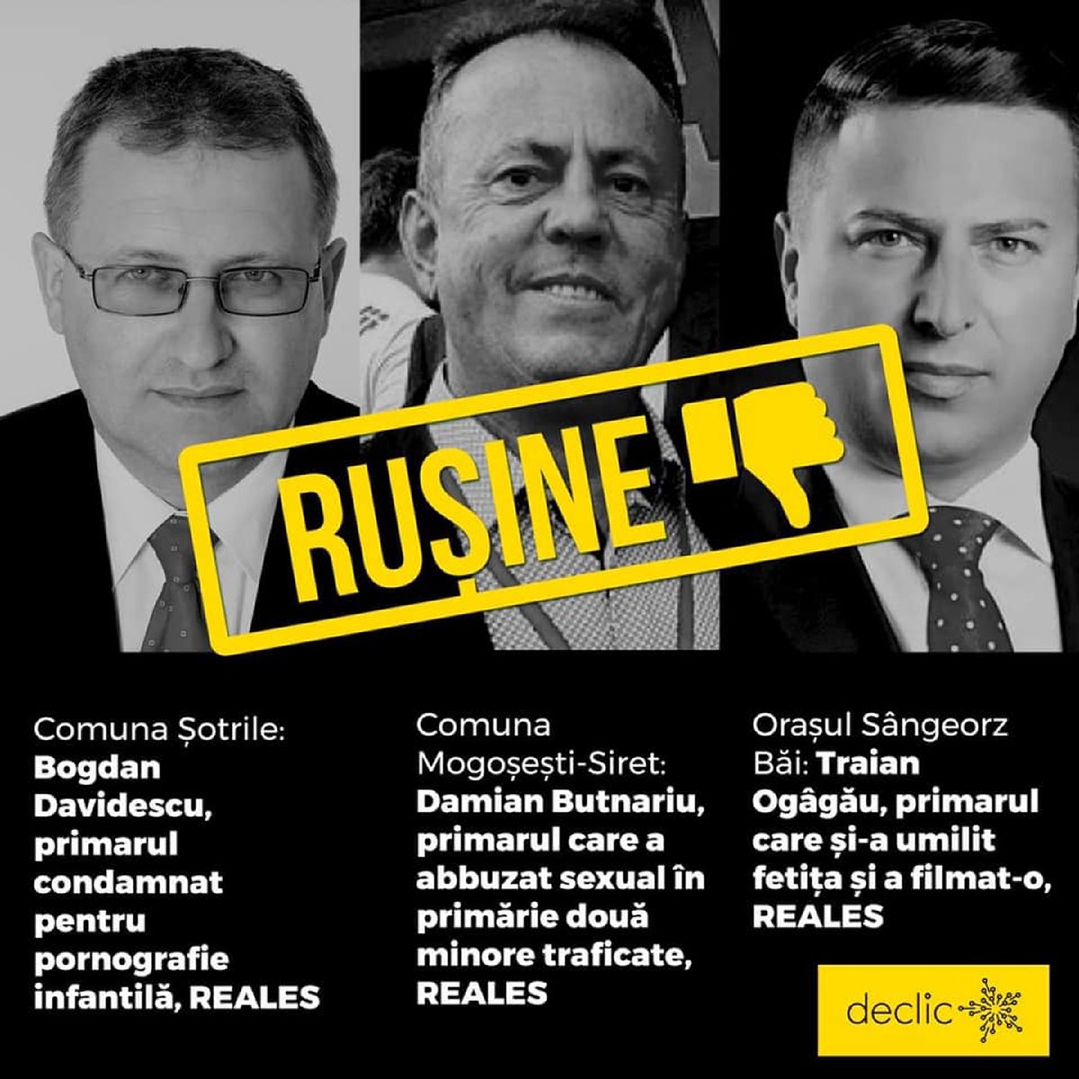 Bogdan Davidescu, primar al comunei Şotrile timp de două mandate, a fost condamnat definitiv, în noiembrie 2019, de Curtea de Apel Ploieşti la un an şi şase luni de închisoare cu suspendare pentru pornografie infantilă, pedeapsa fiind redusă faţă de cea pronunţată de instanţa de fond.