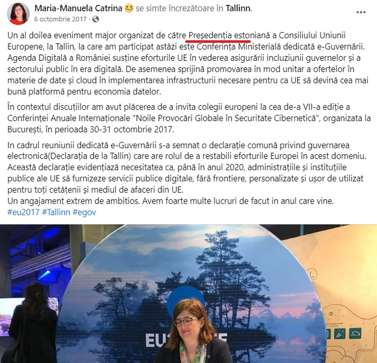 Ce voiam să vă zic: premierul Sorin Grindeanu a numit-o săptămâna trecută pe Manuela Catrina în funcția de secretar de stat în Ministerul Comunicaţiilor şi Societăţii Informaţionale”.