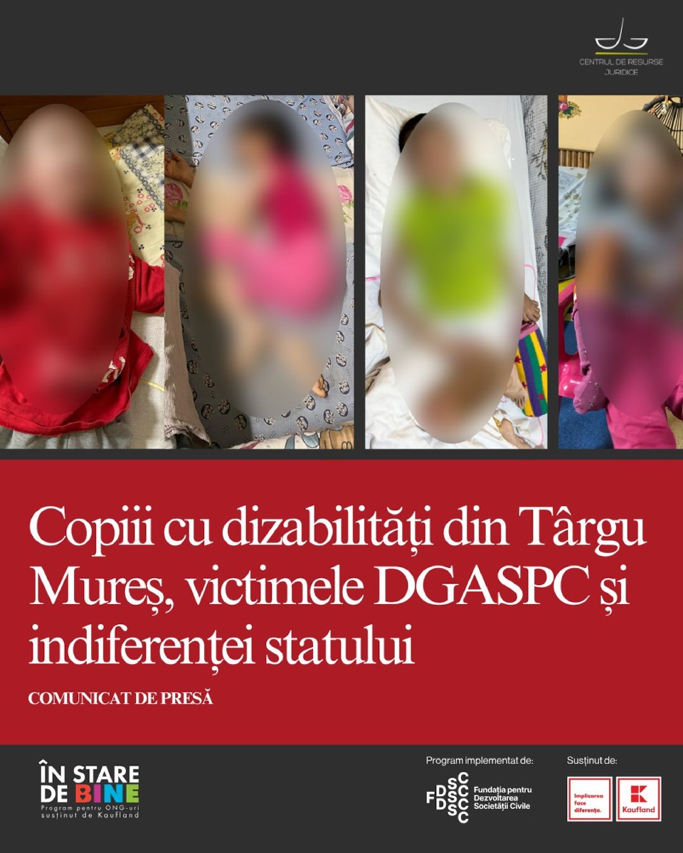 Context mai amplu căminele de copii din Mureș. Sâmbătă, 11 ianuarie 2025, Centrul pentru Resurse Juridice (CRJ), organizație non-guvernamentală, și Consiliul de Monitorizare a Convenției privind drepturile persoanelor cu dizabilități, instituție a statului, au efectuat un control inopinat la patru centre pentru copii cu dizabilități din Târgu-Mureș.