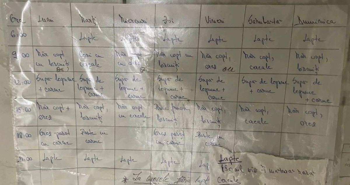 De asemenea, jurnalista Carla Tănasie a făcut public meniul sărăcăcios al copiilor dintr-unul din centreel de la Mureș, atrăgând atenția că hrana insuficientă și nepotrivită scanda dramatic șansele acestora la viață:
