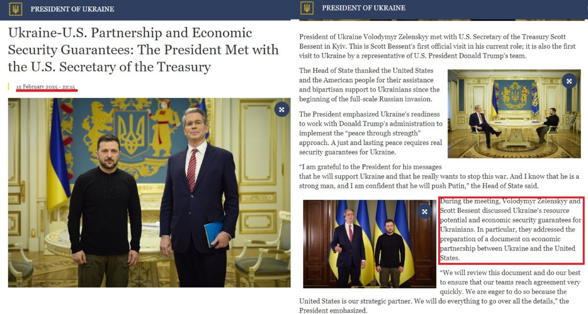 Fals! PODUL a scris AICI care au fost contribuțiile (în bani) ale UE și SUA la susținerea umanitară și militară a Ucrainei de la debutul războiului rusesc. De asemenea, există relatări în presă și inclusiv pe siteul oficial al președinției Ucrainene privind întâlnirea dintre Zelenski și Bessent de la Kiev, din 12 februarie. LINK direct către sursa primară: https://www.president.gov.ua/en/news/partnerstvo-mizh-ukrayinoyu-ta-ssha-j-ekonomichni-garantiyi-95997.