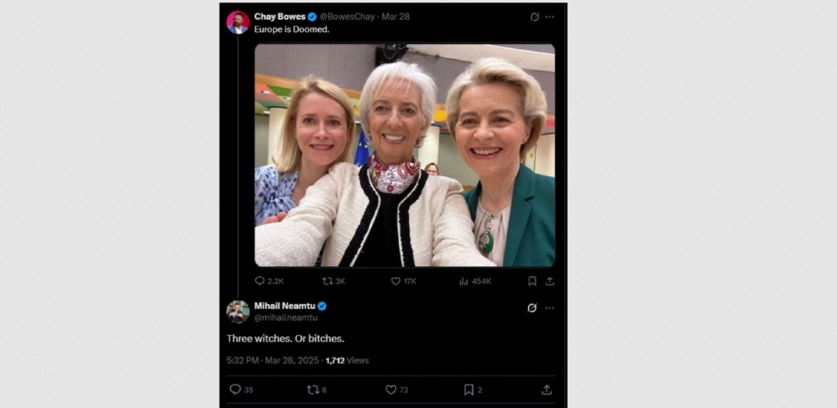 După ce i-a înjurat pe românii care l-au catalogat pe bună dreptate drept putinist - în condițiile în care a susținut fervent, în 2024, dar și în anul curent, candidatul Rusiei la alegerile prezidențiale din România - deputatul AUR Mihail Neamțu a avut o ieșire abjectă similară și la adresa a trei lidere din politica europeană: președinta Comisiei Europene, Ursula von der Leyen; președinta Băncii Centrale Europene, Christine Lagarde; șefa politicii externe a Uniunii Europene, Kaja Kallas. În acest context, deputata USR Diana Buzoianu atrage atenția, într-o postare publicată duminică, 30 martie, că auristul Mihail Neamțu nu mai are ce să caute în calitatea de membru al Parlamentului României.
