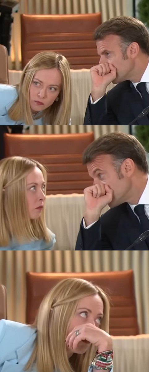Iritarea lui Trump, aparent fără motiv serios la adresa liderului francez, ar putea fi provocată de schimul de replici și priviri dintre Emmanuel Macron și premierul italian Giorgia Meloni la apariția lui Donald Trump în incinta locației în care a avut întrunirea liderilor la summitul din Canada. Expresivitatea lui Meloni, deja celebră, și felul își dă ochii peste cap la șușotelile lui Macron s-au viralizat pe toate platformele de socializare, comentatorii interpretând că cei doi îl criticau pe Trump (fapt puțin probabil având în vedere relațiile mai mult decât cordiale dintre Meloni și Casa Albă). VIDEO la finalul textului!