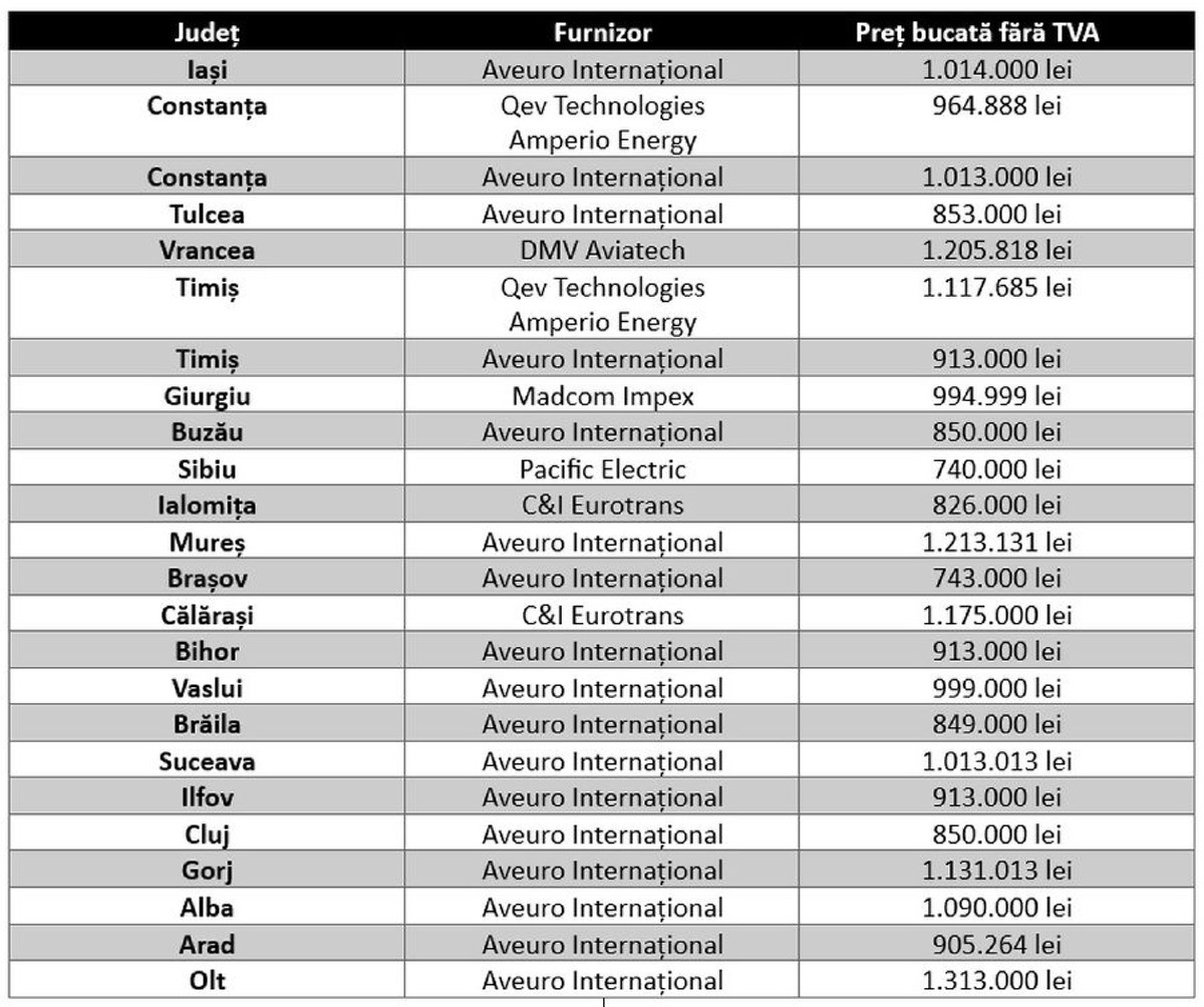 Prețurile la care au fost achiziționate microbuzele de diverse județe: