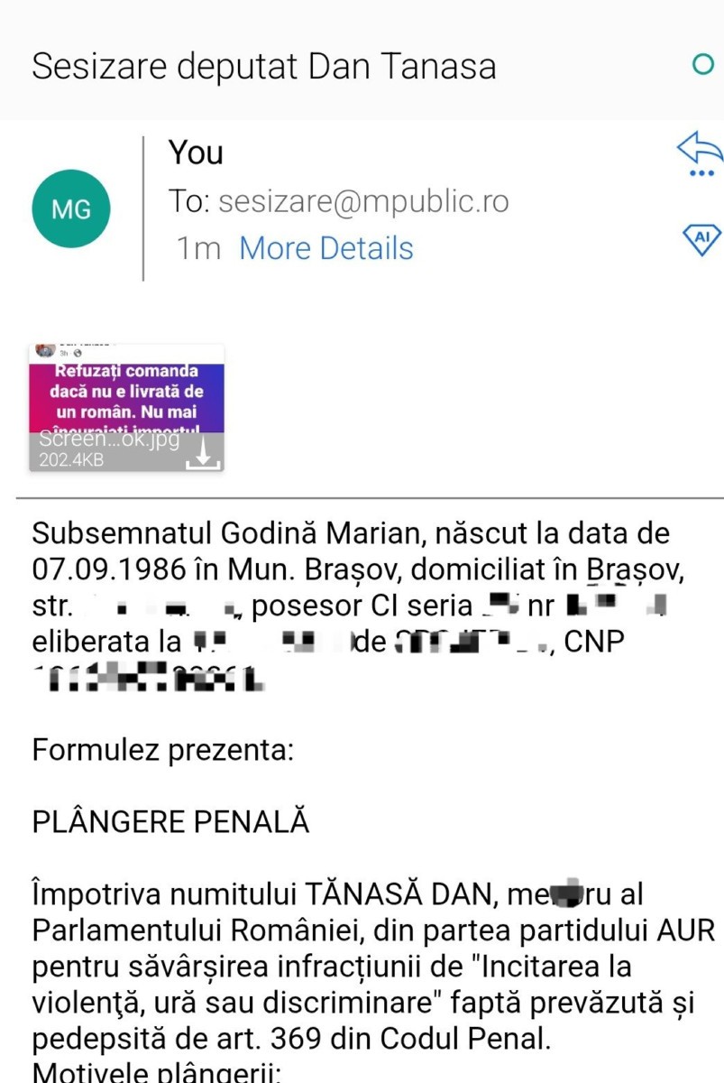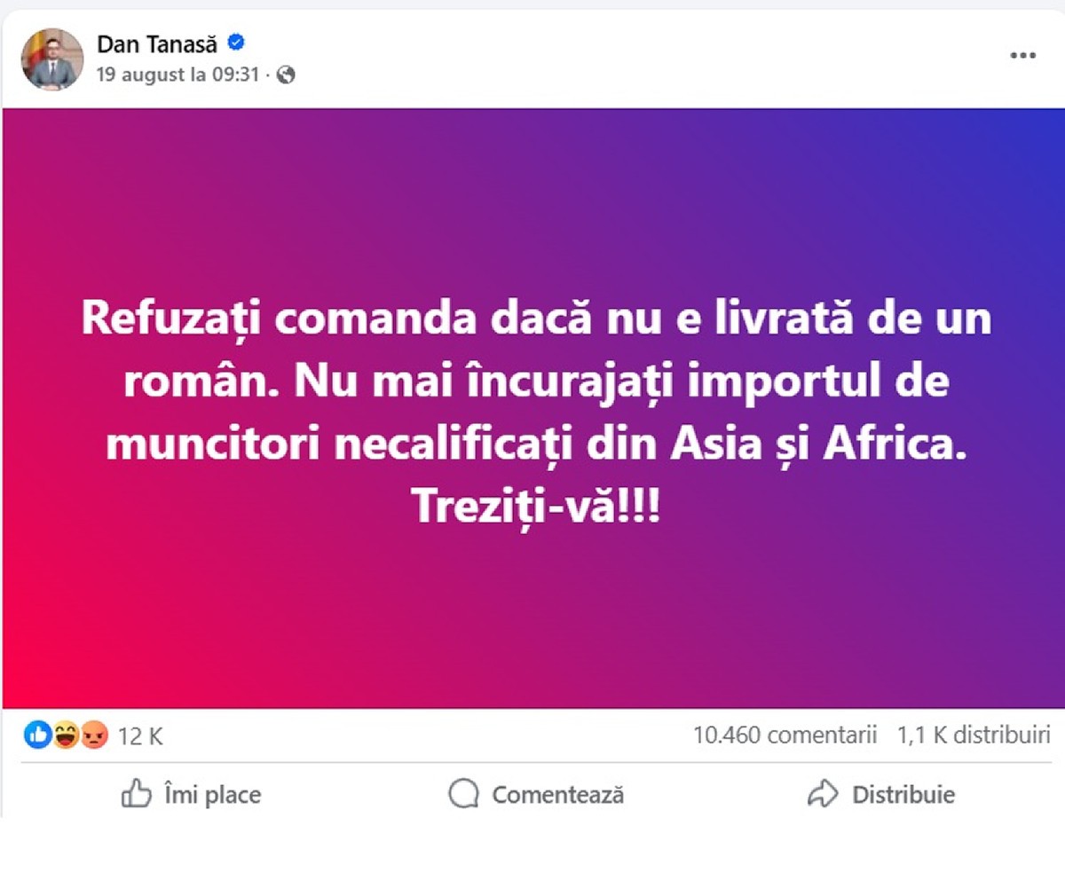 Tănasă s-ar face vinovat de instigare la ură și violență după ce a avut o postare în care îndemna ca românii să refuze comenzile on-line livrate apoi de muncitori din alte țări. Cum incidentul s-a petrecut la doar câteva zile de la respectiva postare, iar agresorul i-a spus livratorului din Bangladesh că e „invadator” (retorica folosită de mulți naționaliști care critică prezența muncitorilor din țări asiatice în România), multe voci din on-line l-au indicat pe deputatul AUR drept vinovat. VIDEO la finalul textului