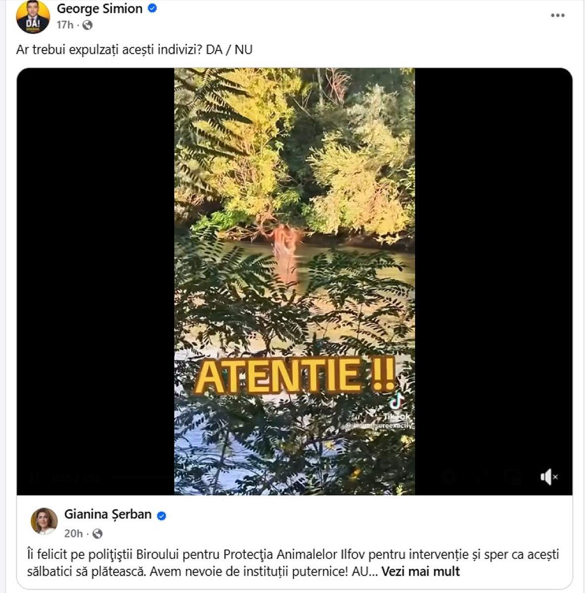 Miercuri, mesaje de ură contra lucrătorilor din Asia a postat și liderul AUR, George Simion, care distribuia o postare a nașei sale, aurista Gianina Șerban. Aceasta evidenția incidentul recent de pe râul Argeș cu mai mulți tineri asiatici ce au rănit două lebede pe când încercau să le vâneze. Despre nepotismele și cumetriile de la vârful AUR, PODUL a scris pe larg AICI
