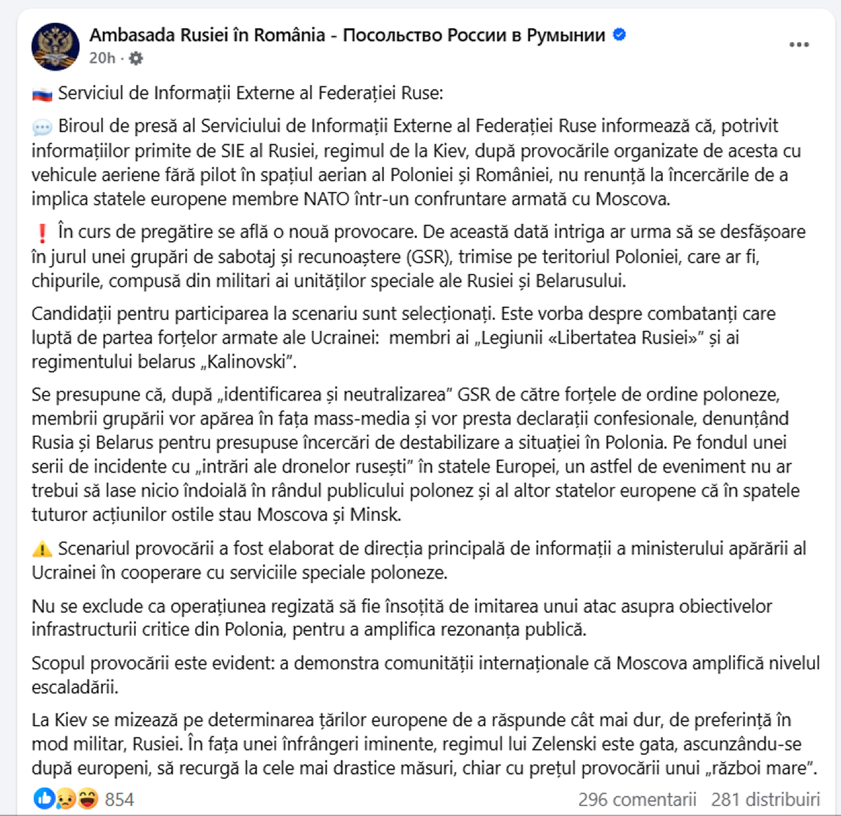 Interesant e că, în momentul în care în Franța se luau măsuri drastice contra echipajului, Ambasada Rusiei în România acuza Ucraina de diversiune cu dorne pentru a atrage „statele NATO într-o confruntare armată cu Moscova”. Ca să vedeți care este, de fapt, adevărata misiune în România a kaghebiștilor de la Ambasadă.