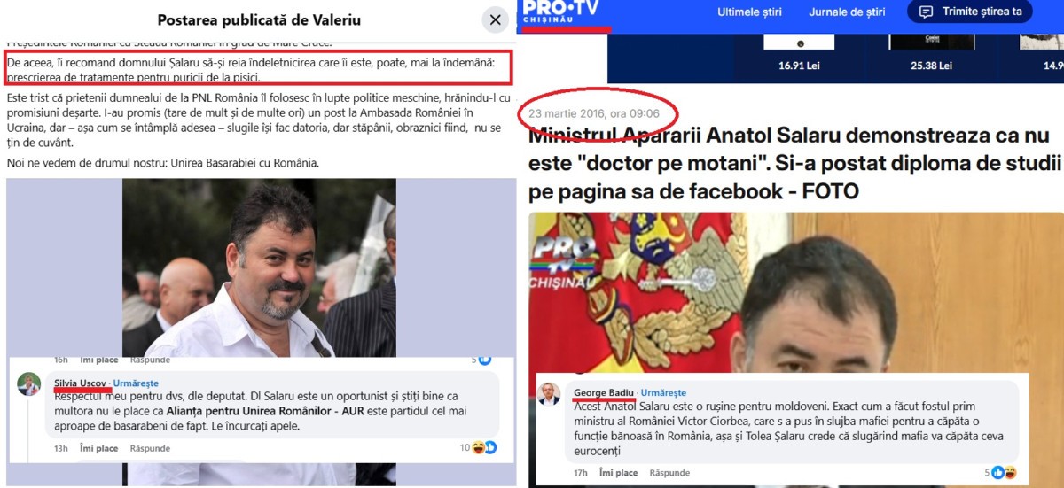Valeriu Munteanu îi răspunde lui Șalaru în postări de o virulență obscenă, pe paginile sale de Facebook, care conțin manipulări grosolane, folosite și în epoca comunistului Vladimir Voronin.