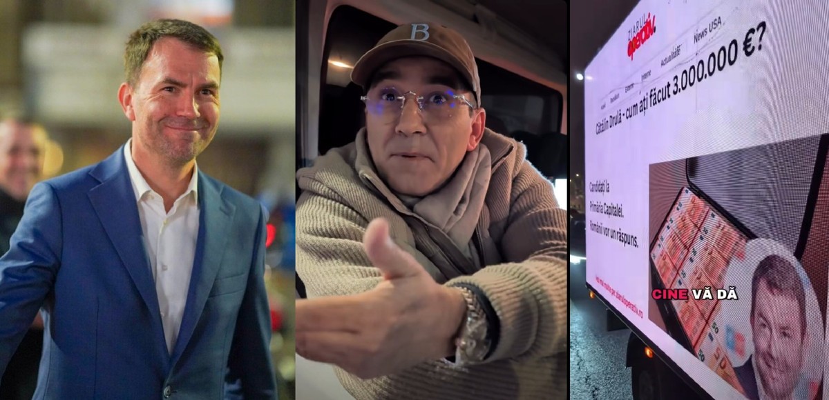Luni seară, Cătălin Drulă, candidatul USR la Primăria Capitalei, a oprit în trafic o dubă care afișa un fake news despre el: cum că ar fi posesorul unei averi de trei milioane de euro, bani pe care ar fi reușit să-i facă în cele nouă luni cât a fost ministru al Transporturilor (în 2021).