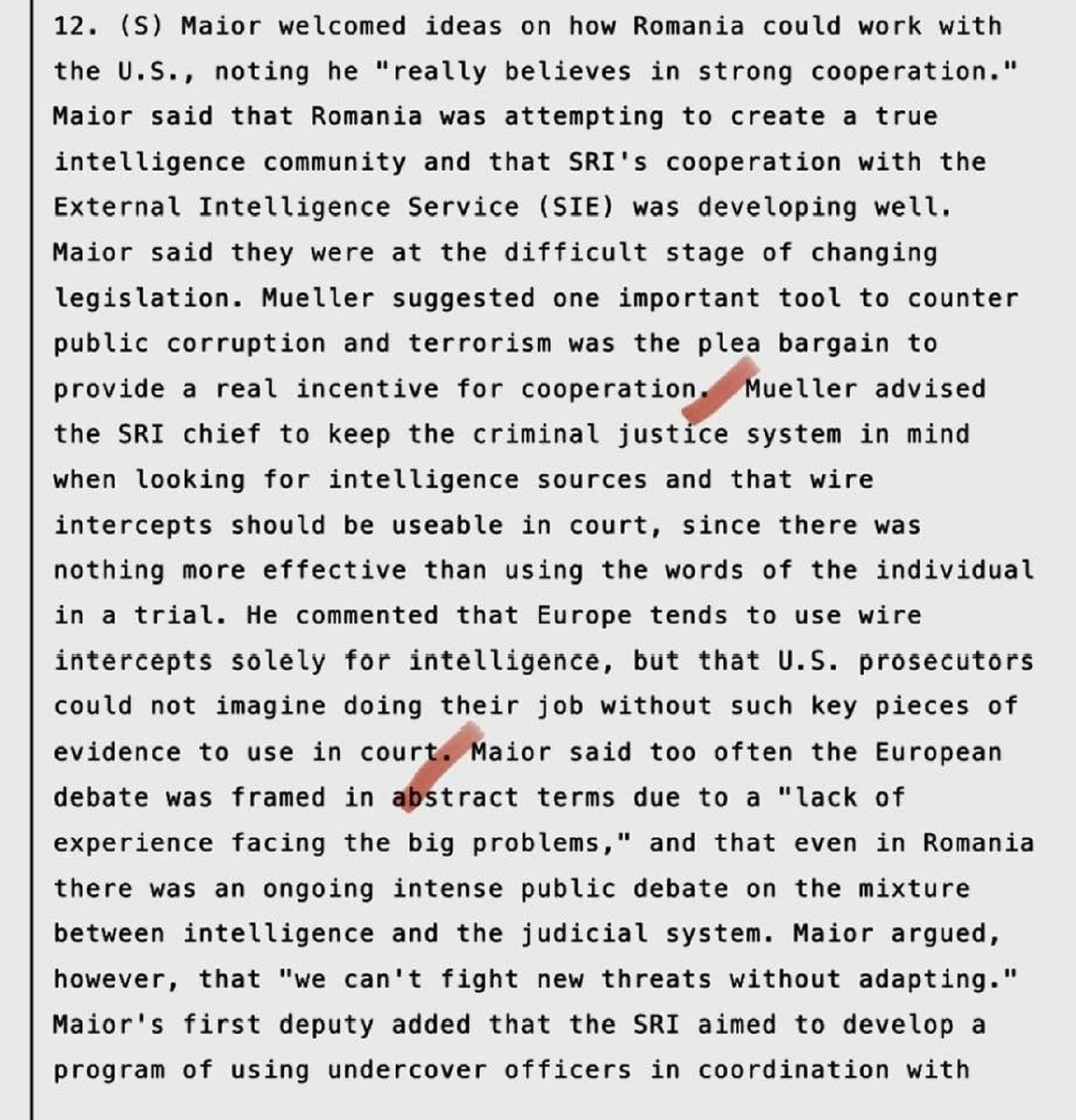 Articolele vremii din presa din România au relatat despre vizita lui Mueller la București, ocazie cu care acesta arăta că peste 570 de ofițeri SRI fuseseră pregătiți în programele FBI. Detalii AICI